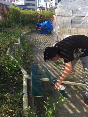 今回の看板は畑に設置したものとは配色を変えまして、全体をグリーン、文字を白色にしました。