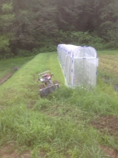 最後に、耕した周りを耕耘して終わろうとしたその時まさかの耕耘機横転…