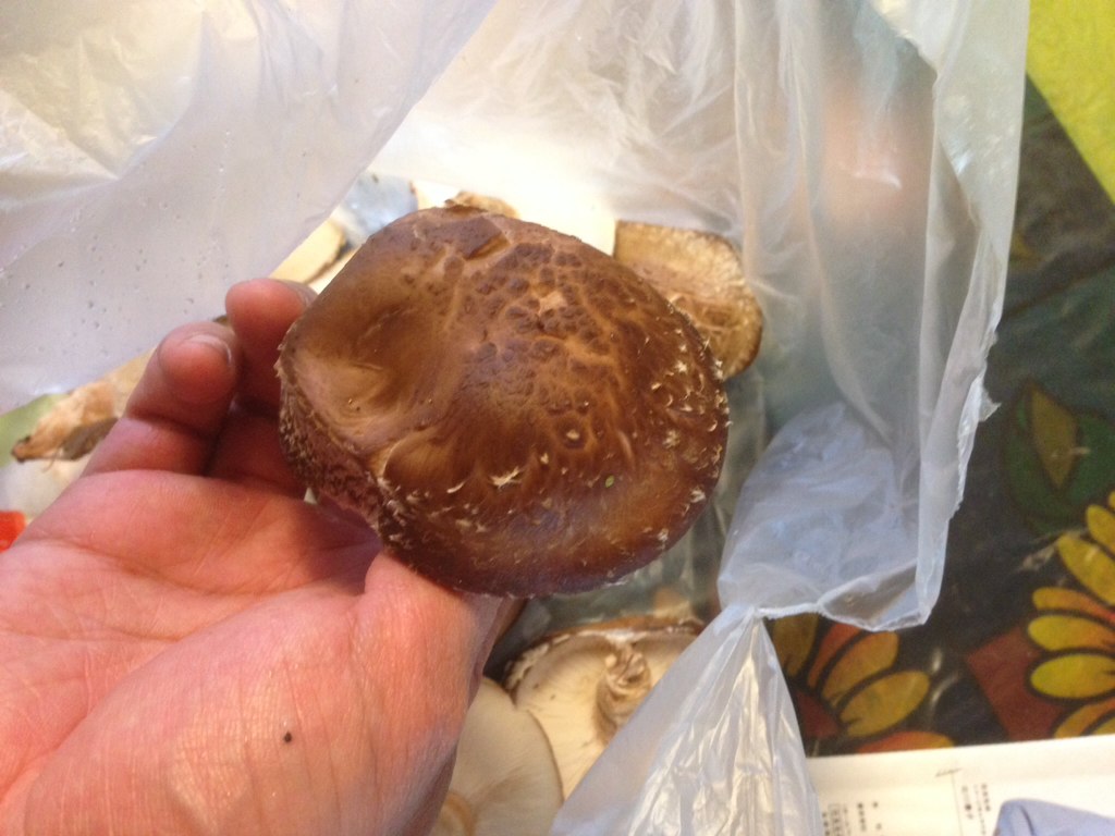 もらった原木シイタケをアルミホイルに包んで焼き、醤油と生姜で食べる‼︎