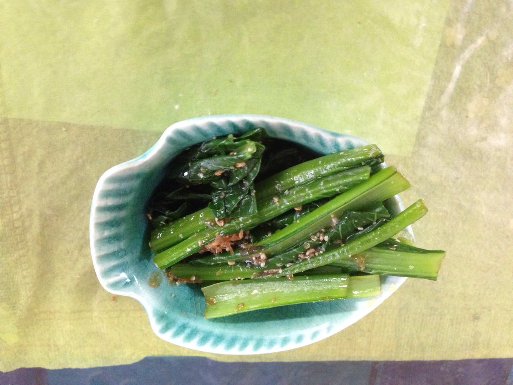 小松菜を茹でて、砂糖、醤油、胡麻と和えるだけらしいです_φ(・_・