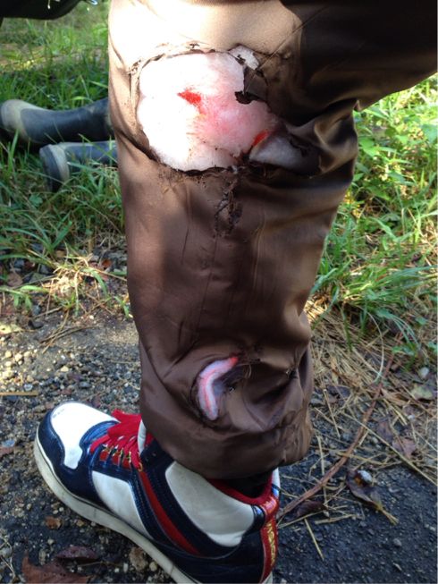 買ったばかりの冬用ツナギが…(/ _ ; )