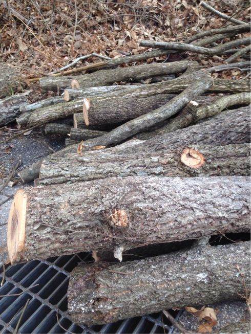 そこで皆さん何をしていたかと言うと、椎茸の原木を作ってました。