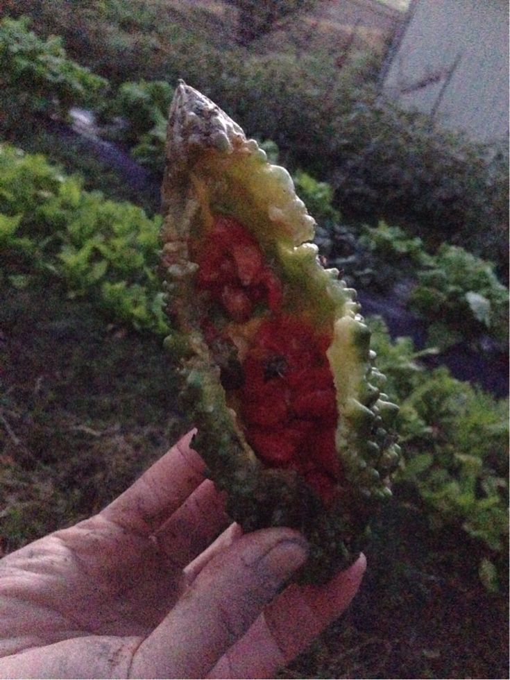 こちらはゴーヤですが、熟れてくると中身が赤くなるんですね!