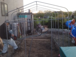 今日も早く帰宅することができたので、昨日に続きビニールハウス作り。