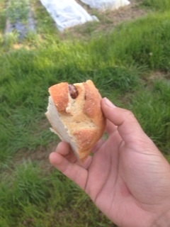 早朝の収穫が終わった後、研修生のSさんから自家製のパンをいただきました!