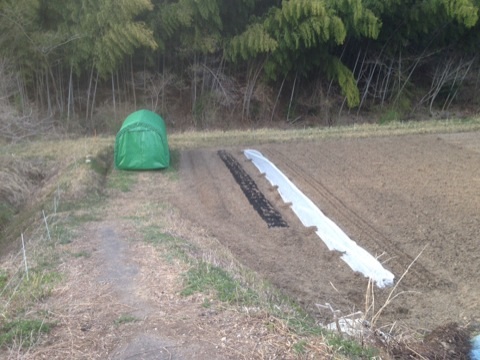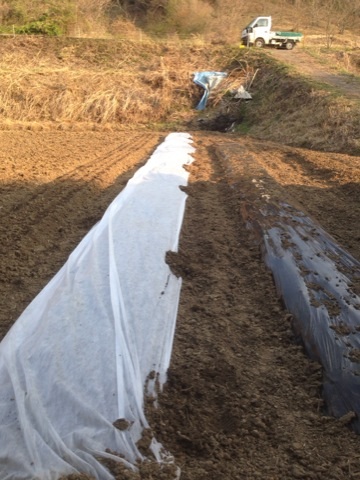 そこから昨日播種したニンジンの水やりと、ダイコンの畝に不織布を張ってきました(^_^)v