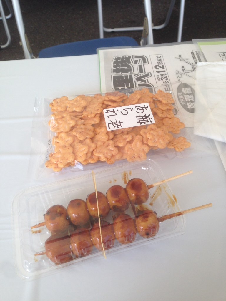 ということで、無料でいただけた団子とあられを食べて早々に退散。