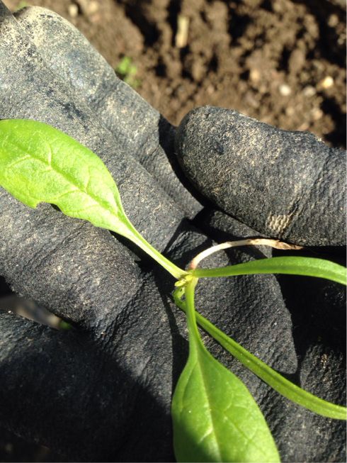 ※芯を食われたほうれん草。