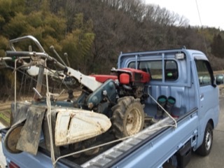 まずこの新しい畑には農機も農具もないので、いつもの畑からすべて持ってこなくてはいけません。