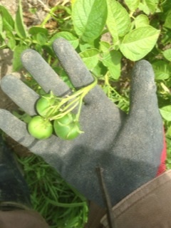ジャガイモを収穫していたときなので、てっきり除草を免れたトマトかと思いきや、ジャガイモの実なんですよ‼︎