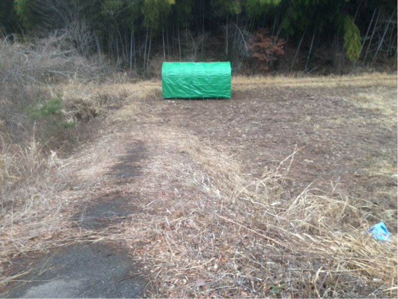 このパイプハウスの出入口を坂の下に持っていった方が良いとのアドバイスを受けたので、早速下準備です。