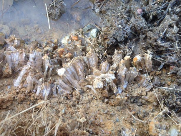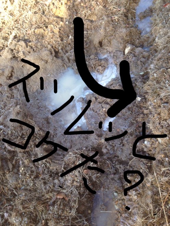 崩れたわけではなく、何かがここに寄りかかったような土の様子