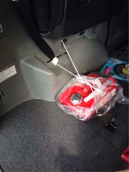 給油も終わったところで、携行缶を固定する紐はもってる?と言われ、ないことを伝えると店内に戻り紐を用意して車に固定してくれました。