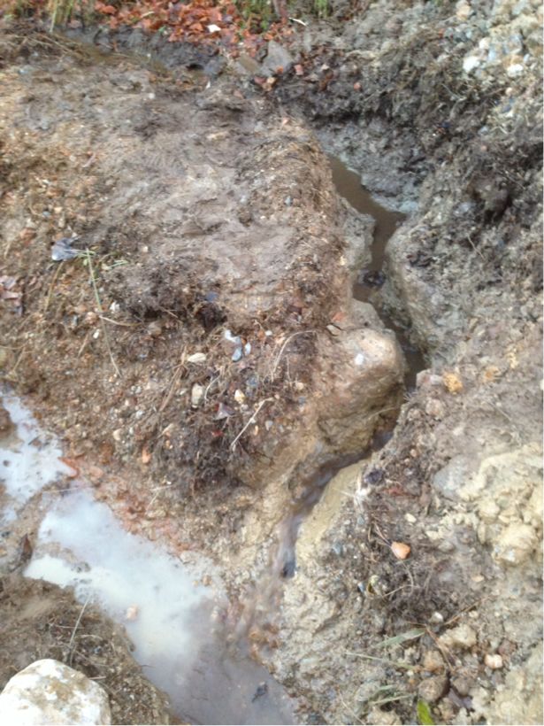 最後は排水路をより低くするため、ハンマーとバールでひたすら叩き続けてかなり深く掘りました!