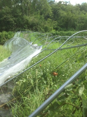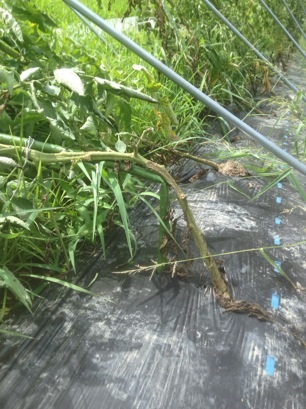 支柱と一緒にトマトも折れてますね。