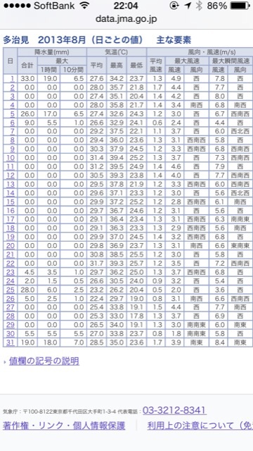 2013年8月合計雨量132mm…