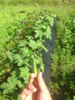 そして畑に来れるのが少し先になるので、まだ小さかったのですがオクラを試食(^_^)v