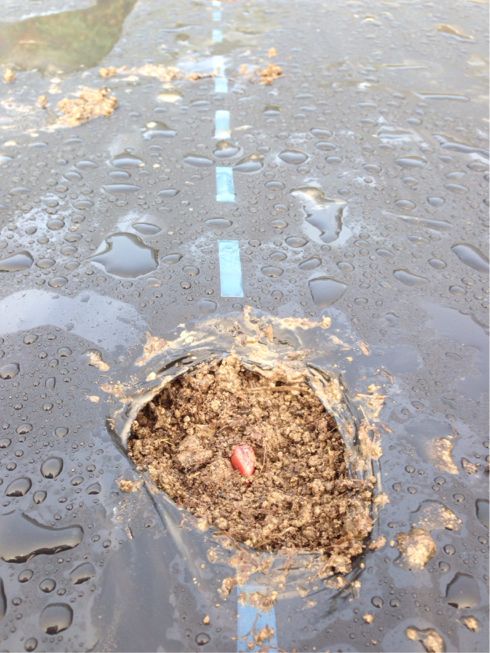 お歯黒と呼ばれる黒い部分と、少し窪んだ部分を上向きで播種。