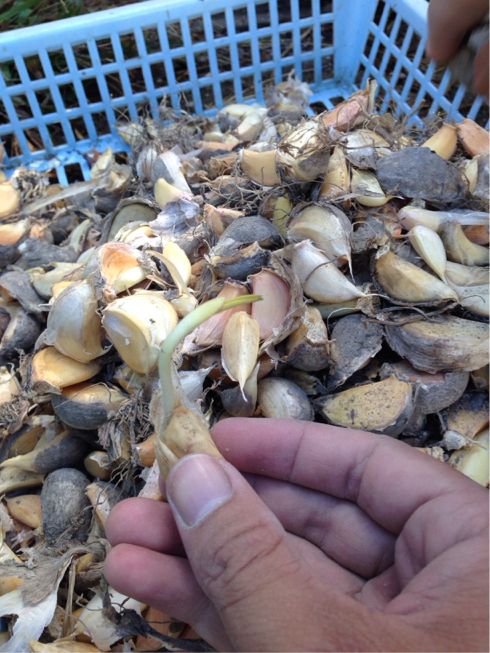 定植するニンニクは一片に分けて、一個ずつ土の中に^ ^