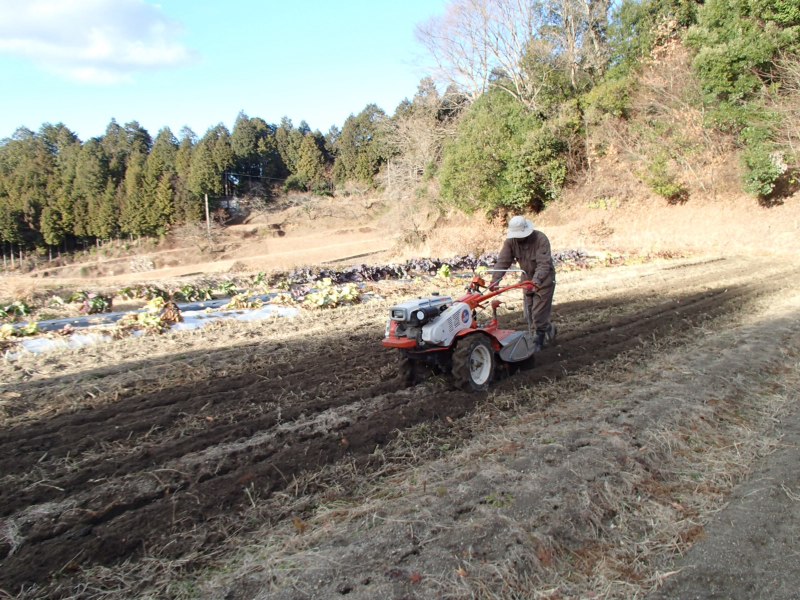 それとこんなに腰が引けているのは、耕運機のカバーがなく耕した土がダイレクトに私の足元にバチバチと飛んできたためです。