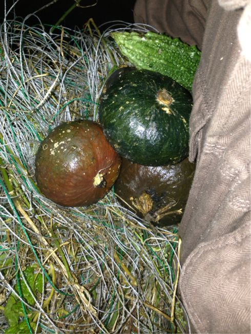 そして次は、ゴーヤとカボチャの収穫後のネットの回収作業です。