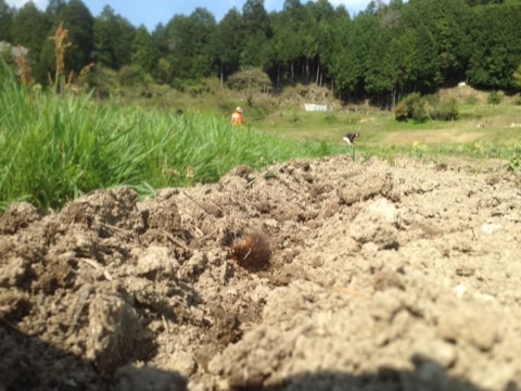 今日の作業は地面が水平ではないため慣らします。