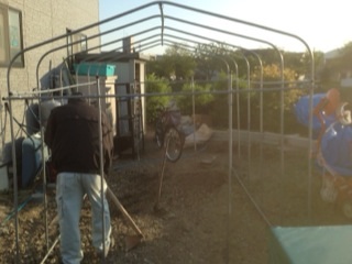 今日も早く帰宅することができたので、昨日に続きビニールハウス作り。