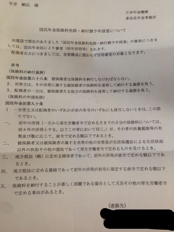 まずは免除申請を出していた国民年金ですが、通りませんでした^^;