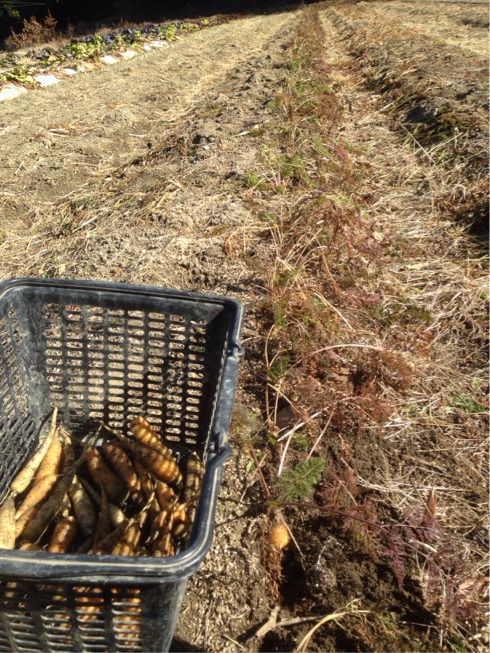 それともう一点、人参の収穫なのですが今回はとなりで松本さんが作業をしていたので、さりげなく横目で見たところ、まずはひたすらスコップを土に入れて抜きやすくし、その後一気に人参を抜いて、まとめて収穫という手順。(遠目に見た感じ)